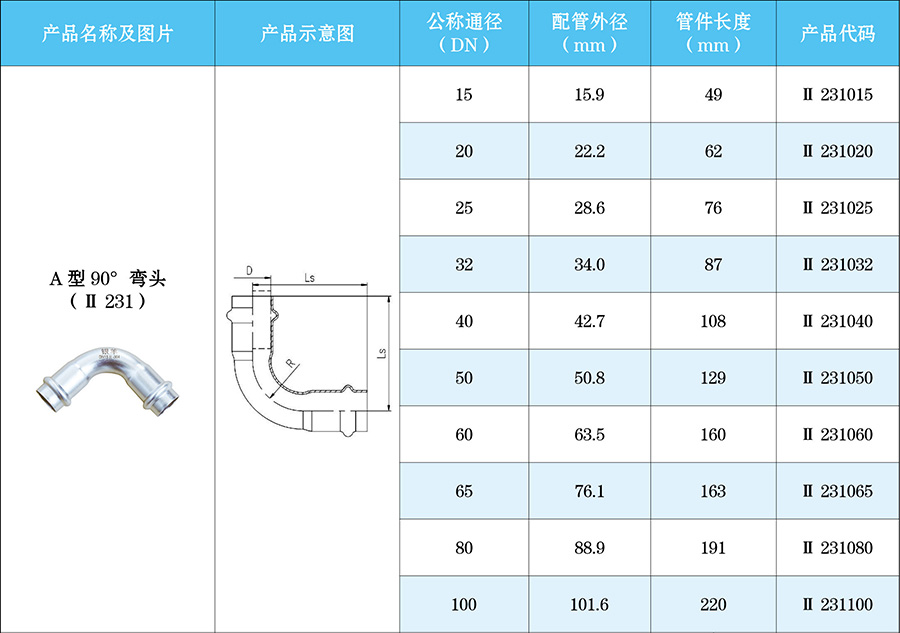 管道安裝中常用的一種連接用管件,連接兩根公稱通徑相同或者不同的管子,使管路做一定角度轉彎,公稱壓力為1-1.6Mpa。